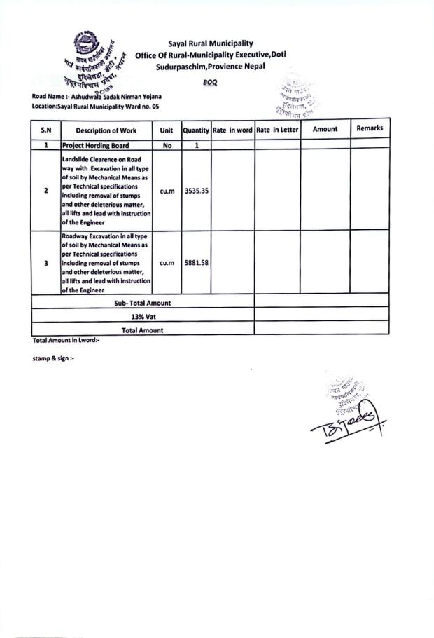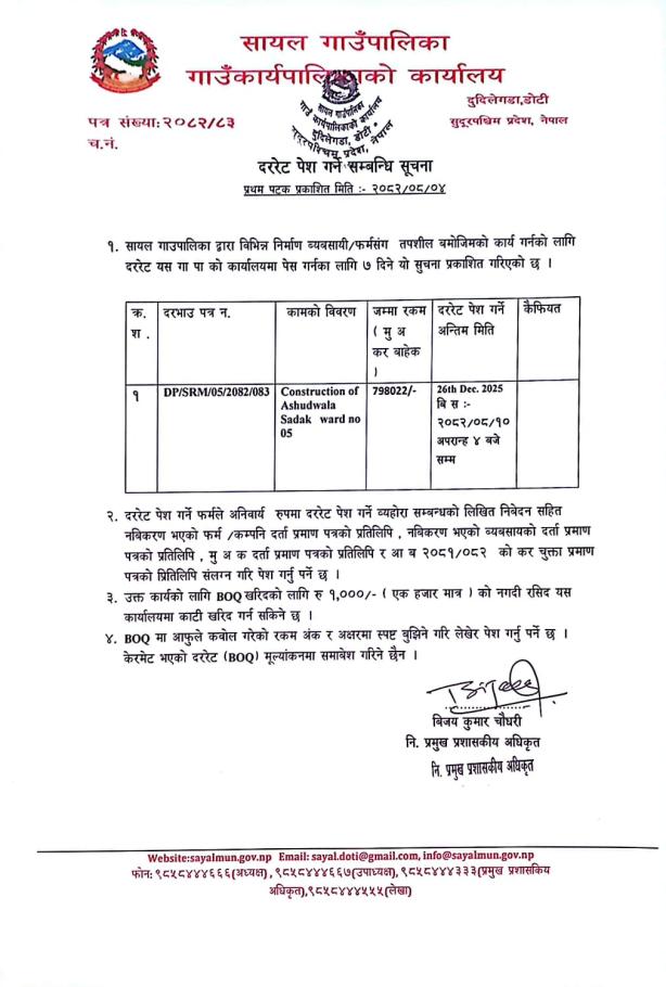 दररेट पेश गर्ने सम्बन्धि सूचना प्रथम पटक प्रकाशित मिति: २०८२/०८/०४