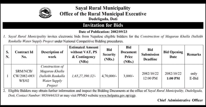 Invitation for Bids Date of Publication: 2082/09/23