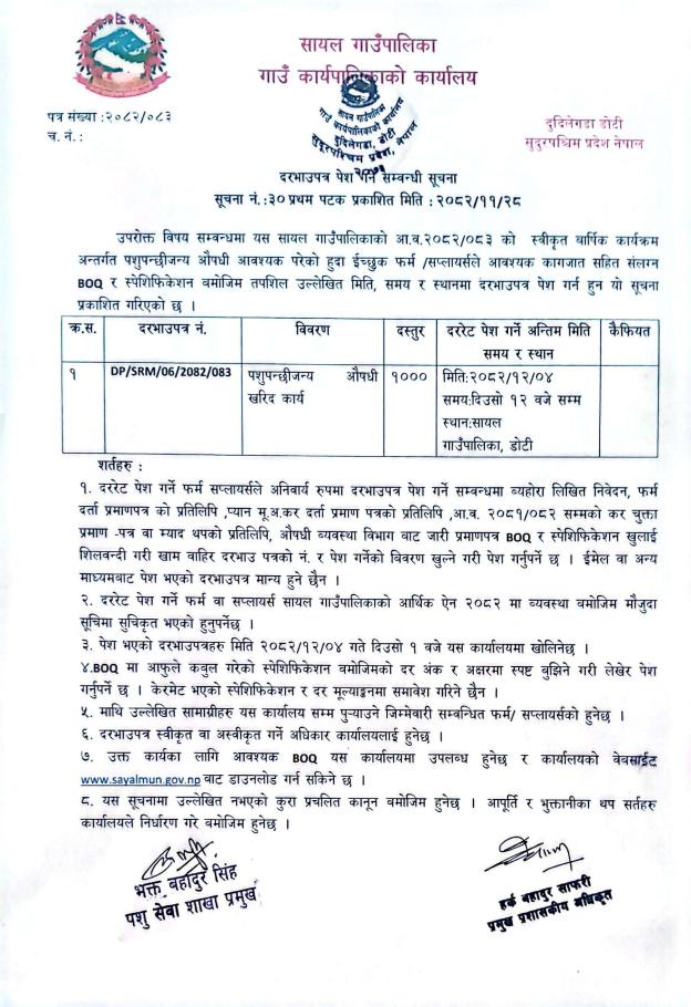 दरभाउपत्र पेश पनि सम्वन्धी सूचना!!! सूचना नं.: ३० प्रथम पटक प्रकाशित मिति:२०८२/११/२८