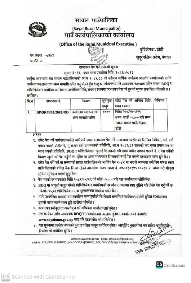 सम्झौता गर्न आउने बारेको सूचना प्रकाशित मितिः २०८२/०५/२०