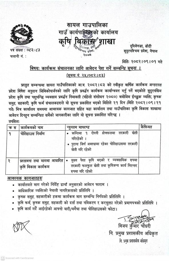 बिषयः कार्यक्रम संचालनका लागि आवेदन पेश गर्ने सम्वन्धि सूचना । (सूचना नं. २५/०८२।८३)