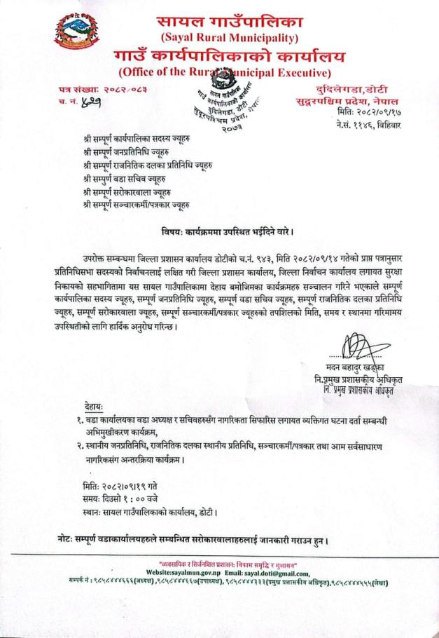 विषयः कार्यक्रममा उपस्थित भईदिने वारे।