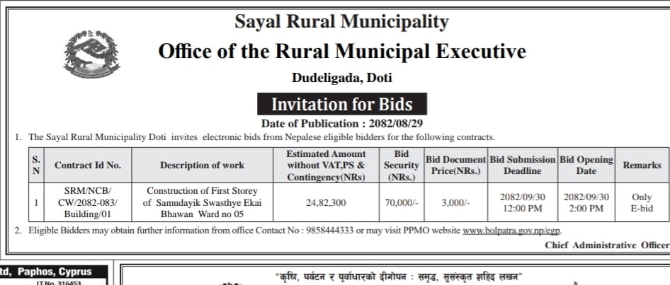 दररेट पेश गर्ने सम्बन्धि सूचना प्रथम पटक प्रकाशित मिति: २०८२/०८/०४